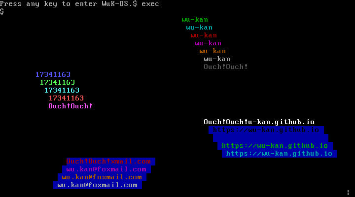 OUCH!OUCH!。 - 在内核中,对33号、34号、35号和36号中断编写中断服务程序,分别在屏幕1/4区域内显示一些个性化信息。再编写一个汇编语言的程序,作为用户程序,利用
