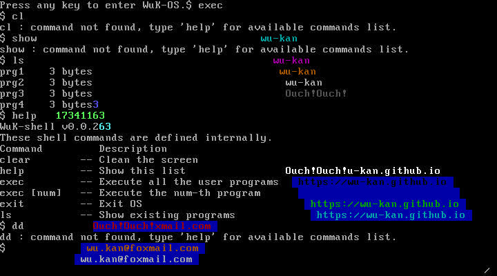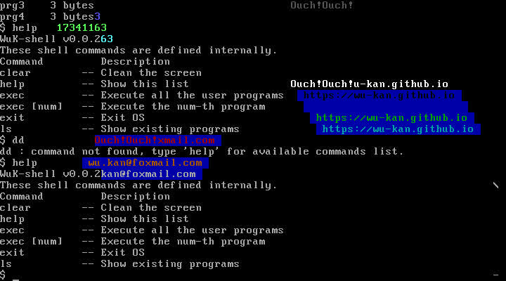 如上图,使用exec指令轮流运行我的四个程序,分别调用软中断int 33~int 36。按下Ctrl+C可以退出程序。程序检测到键盘输入,因此显示Ouch!Ouch!