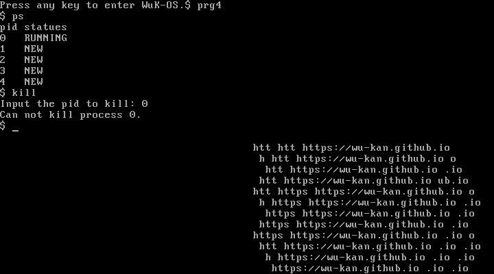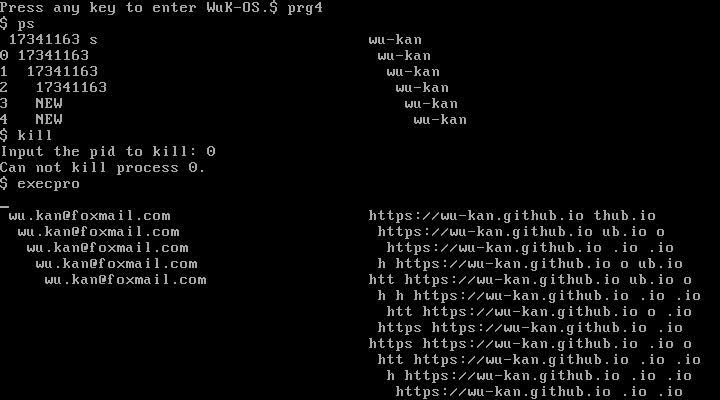 当然,在当前版本的内核中检测键盘中断没有用多进程实现,因此在多进程运行的时候实际上是没有办法退回到内核的,也就是说这个关闭进程的功能虽然实现是正确的,但是暂时没办法去测试。等待后续版本实现多进程响应键盘中断之后吧。