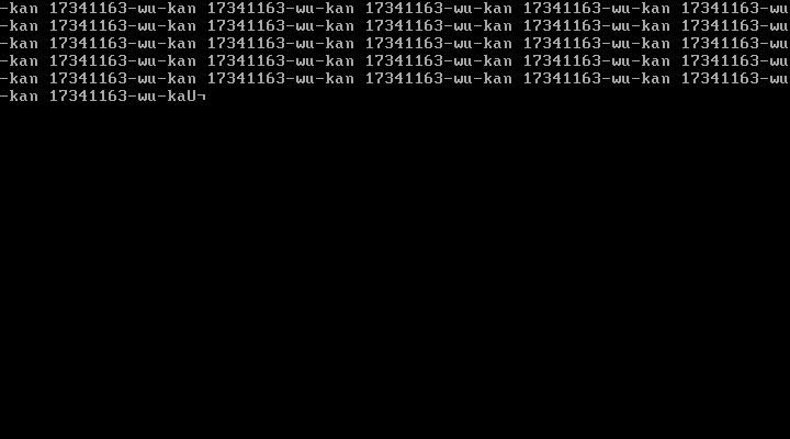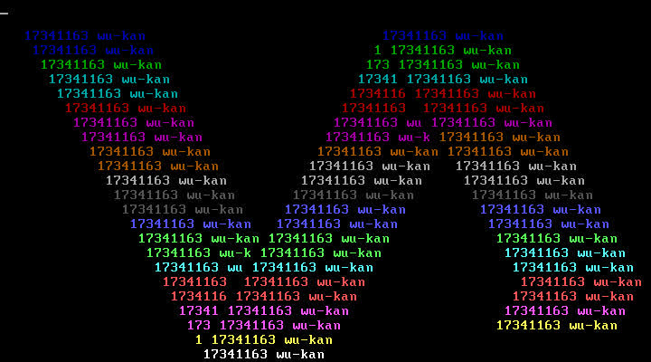 a,不如让学号跟着一起弹跳(a在我的姓名里有)。于是每次打印整个字符串,并设置弹跳的右边界为WIDTH-LENGTH。 - 打印前有一句