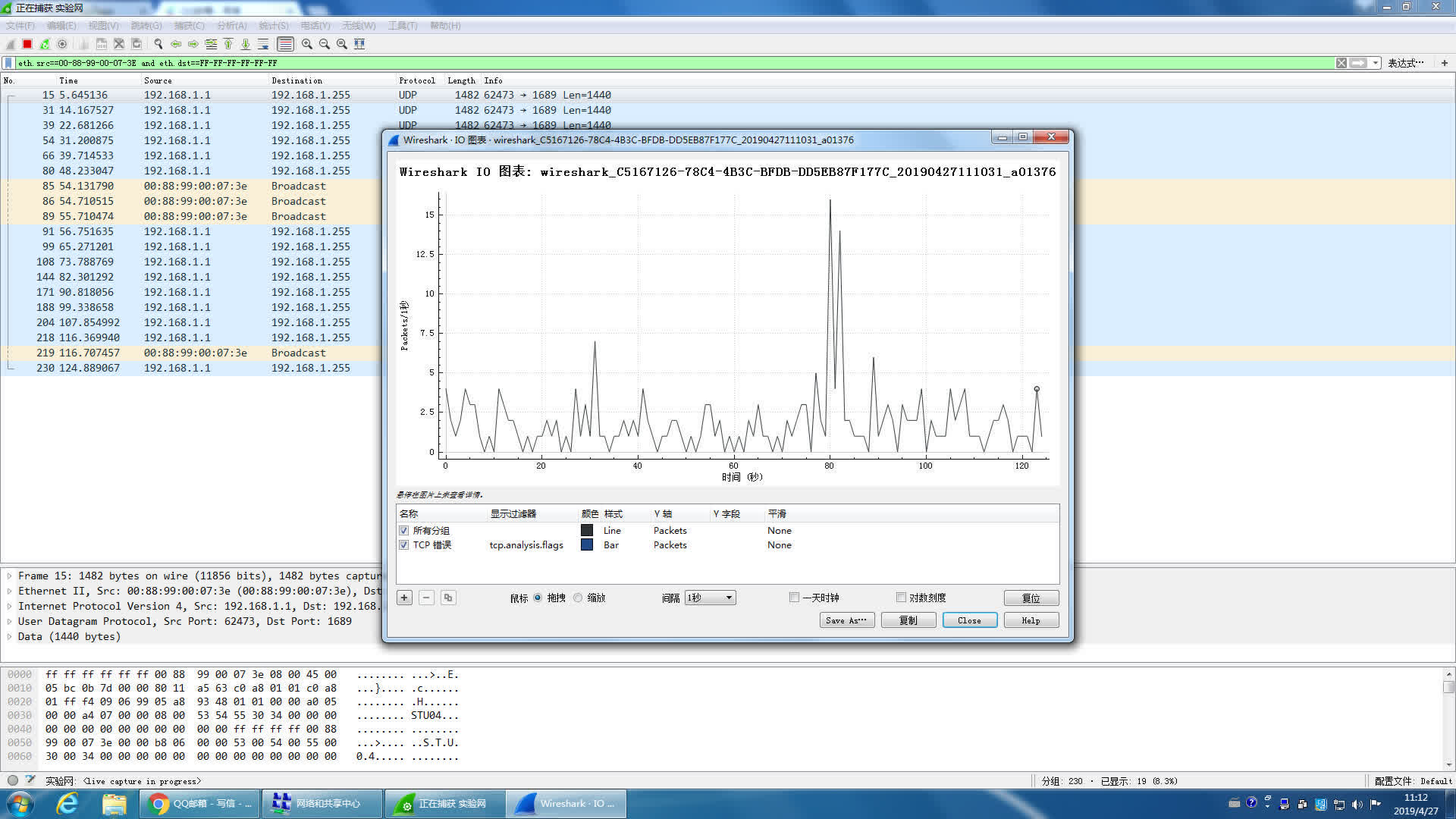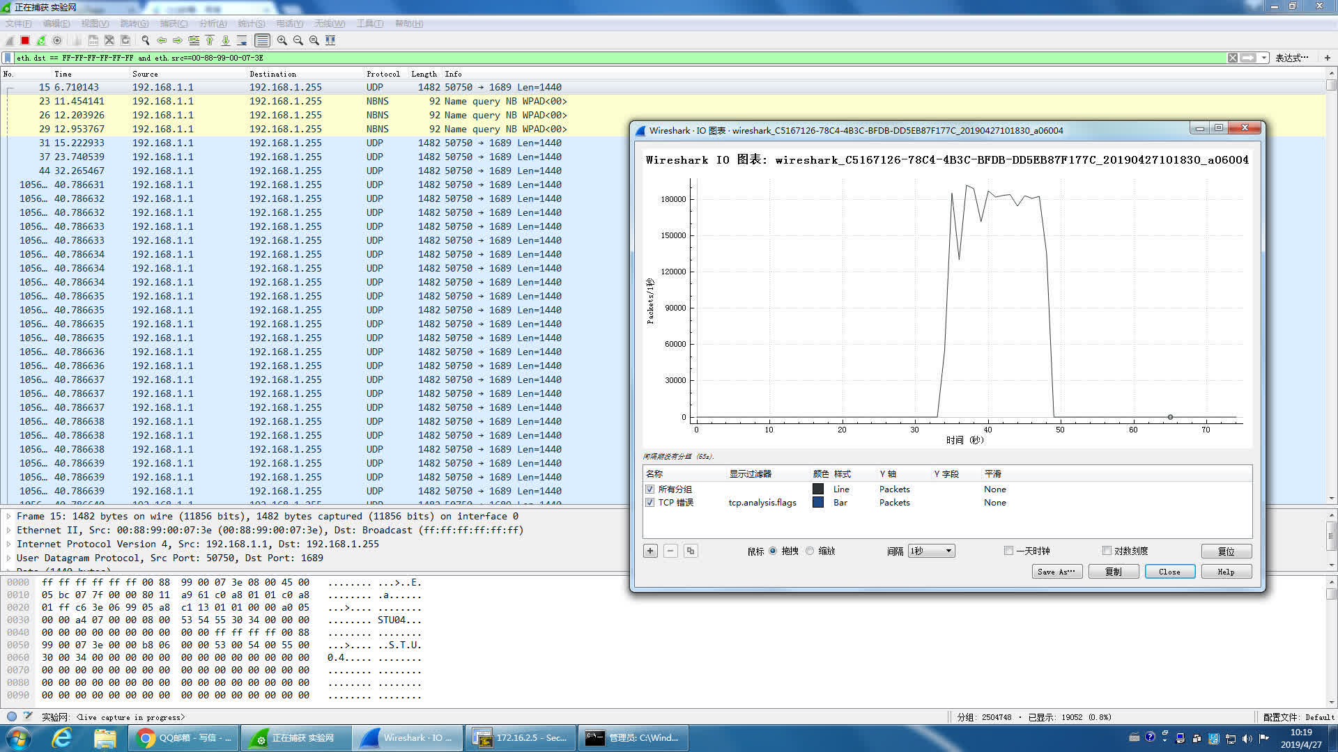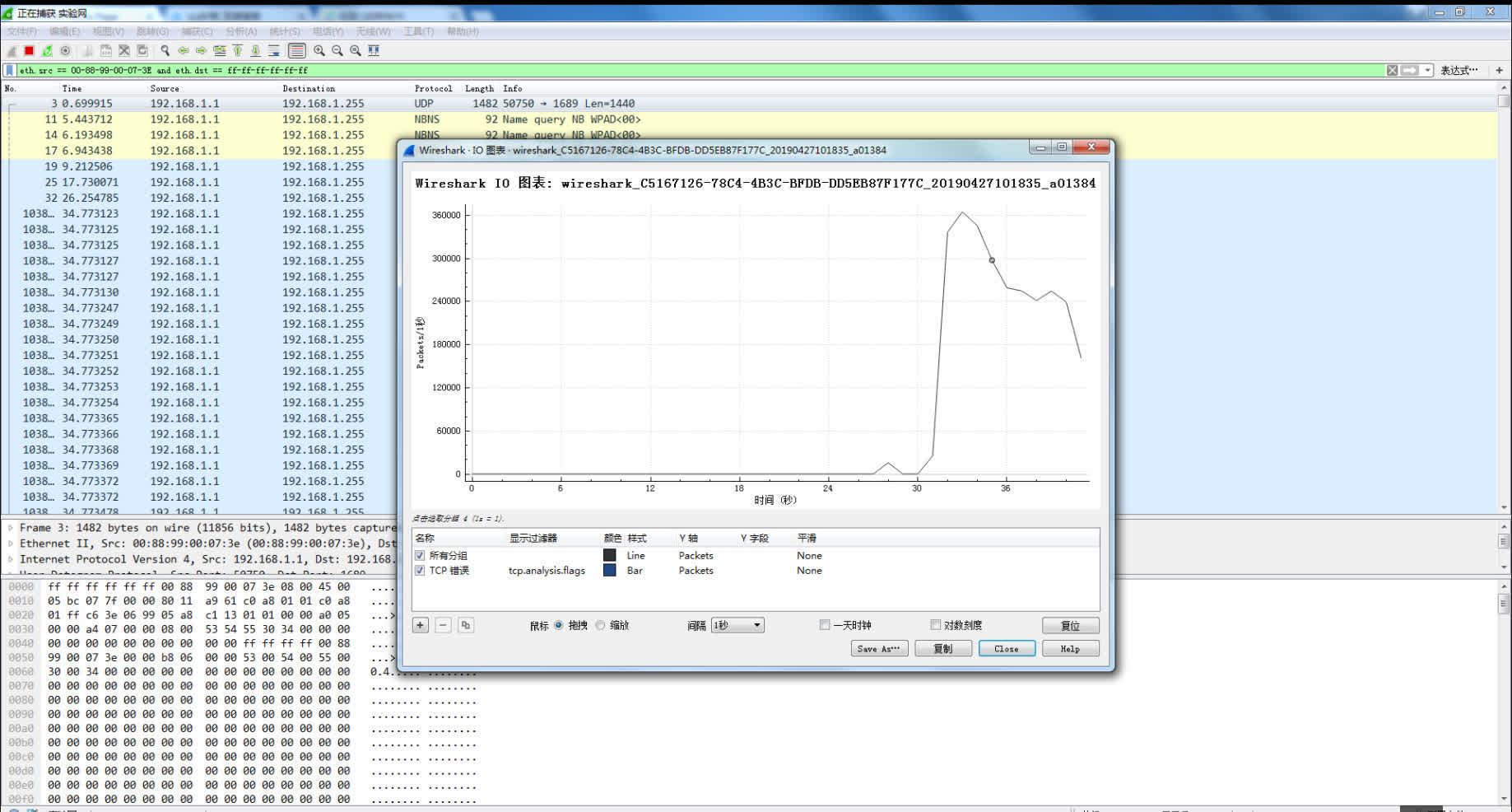 经过2分钟截屏Wireshark(capture/interfaces):