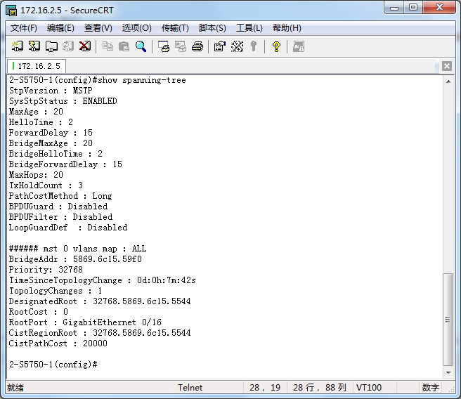 | Switch2 | 32768 | 5869.6c15.59f0 | 32768.5869.6c15.5544 | 0 | GigabitEthernet 0/16 | 32768.5869.6c15.5544 |