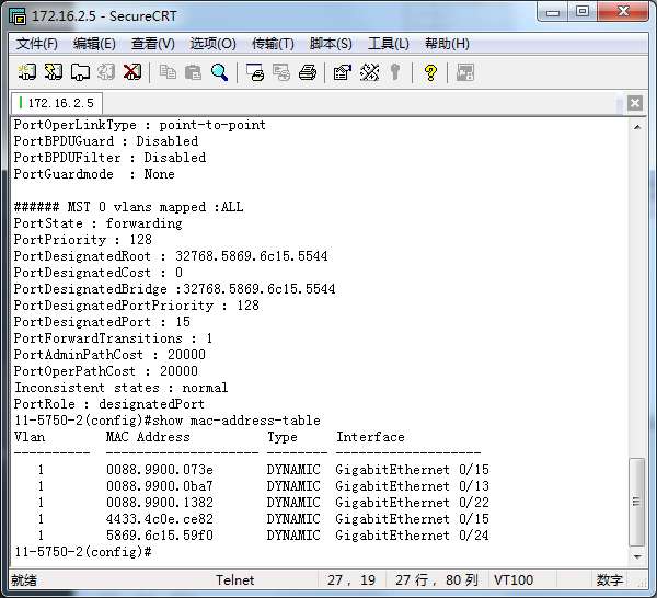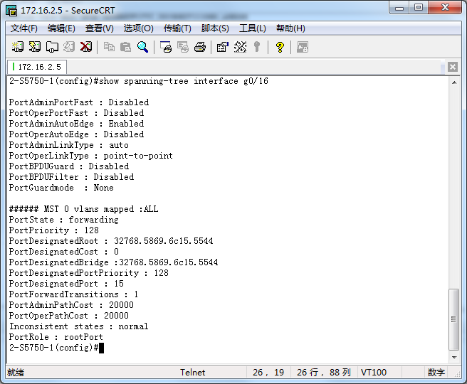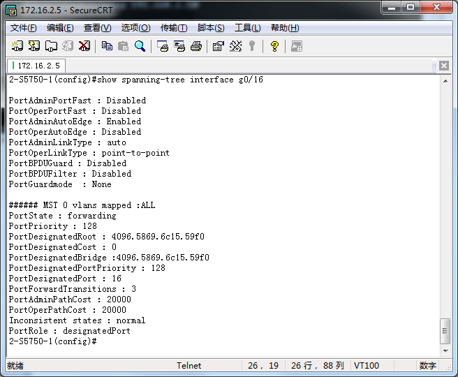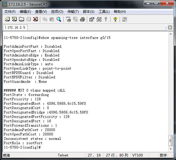 (config)#show spanning-tree interface f0/2 或 f0/1