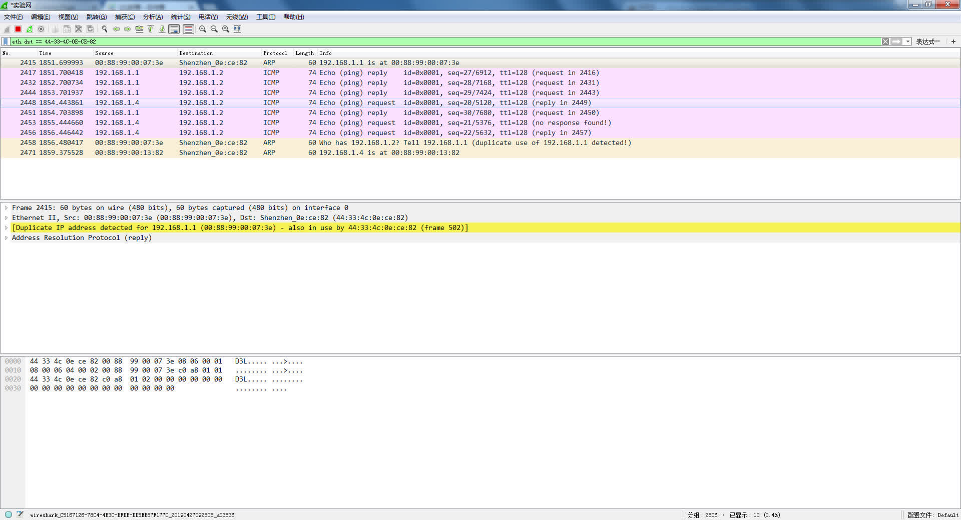 Wireshark以太网帧(DIXv2)截屏: