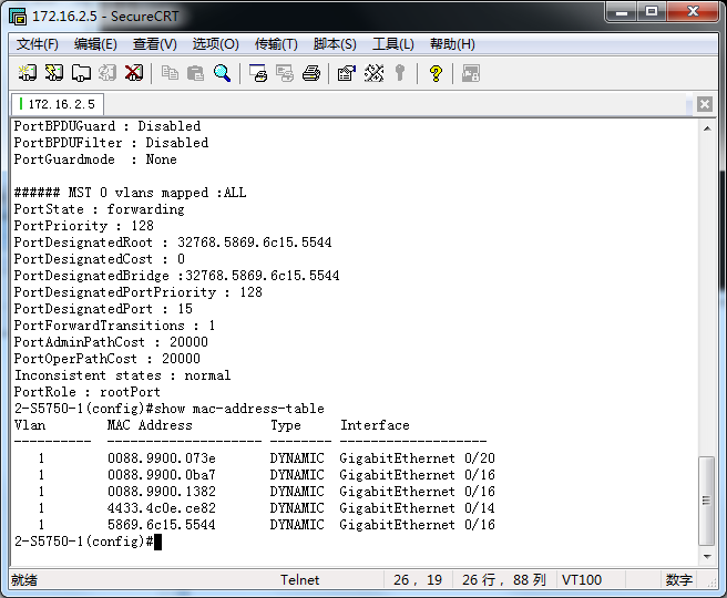 - Switch2的MAC地址表截屏: