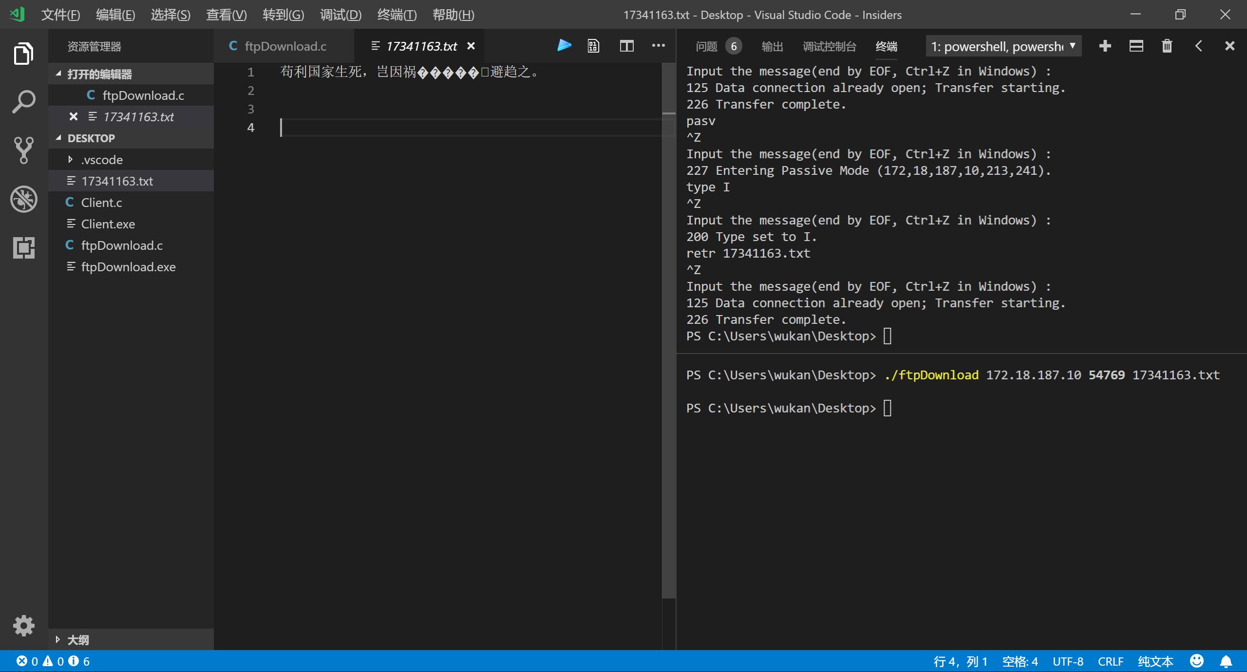编写一个程序(聊天程序的客户端),用FTP协议下载指定文件(选做)