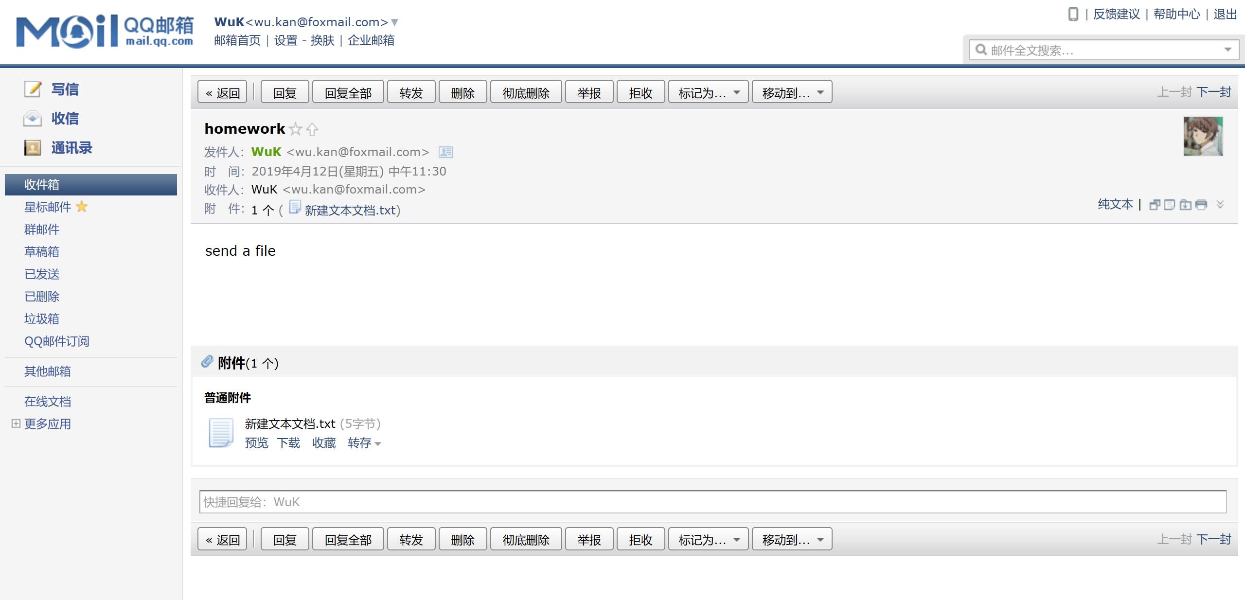 (选做)从你的邮箱发一份邮件到同学的邮箱。QQ邮箱见【注意事项】。