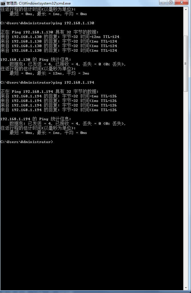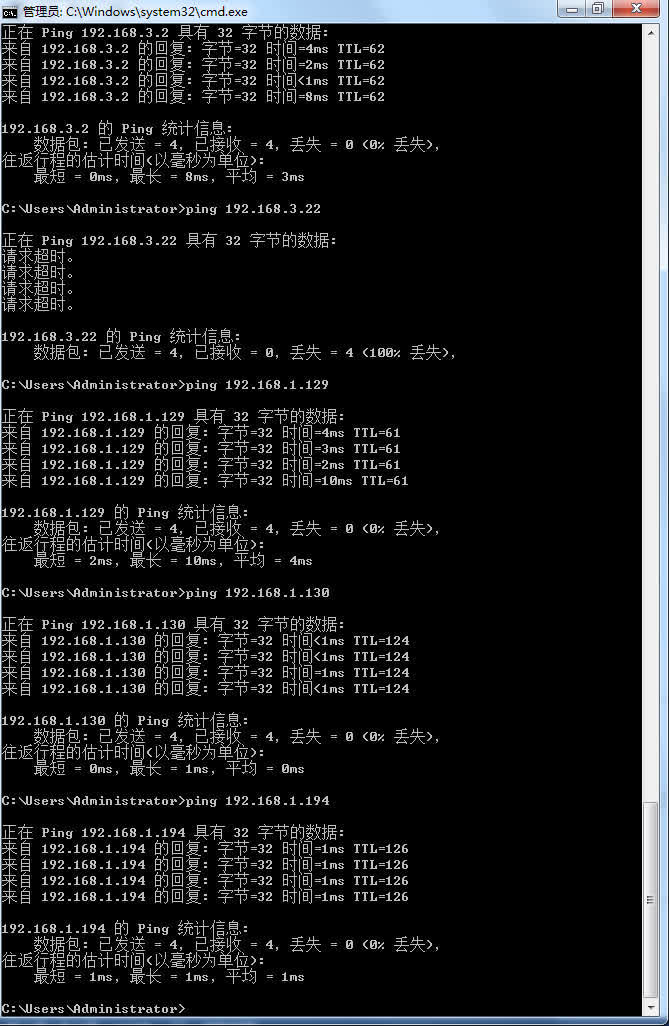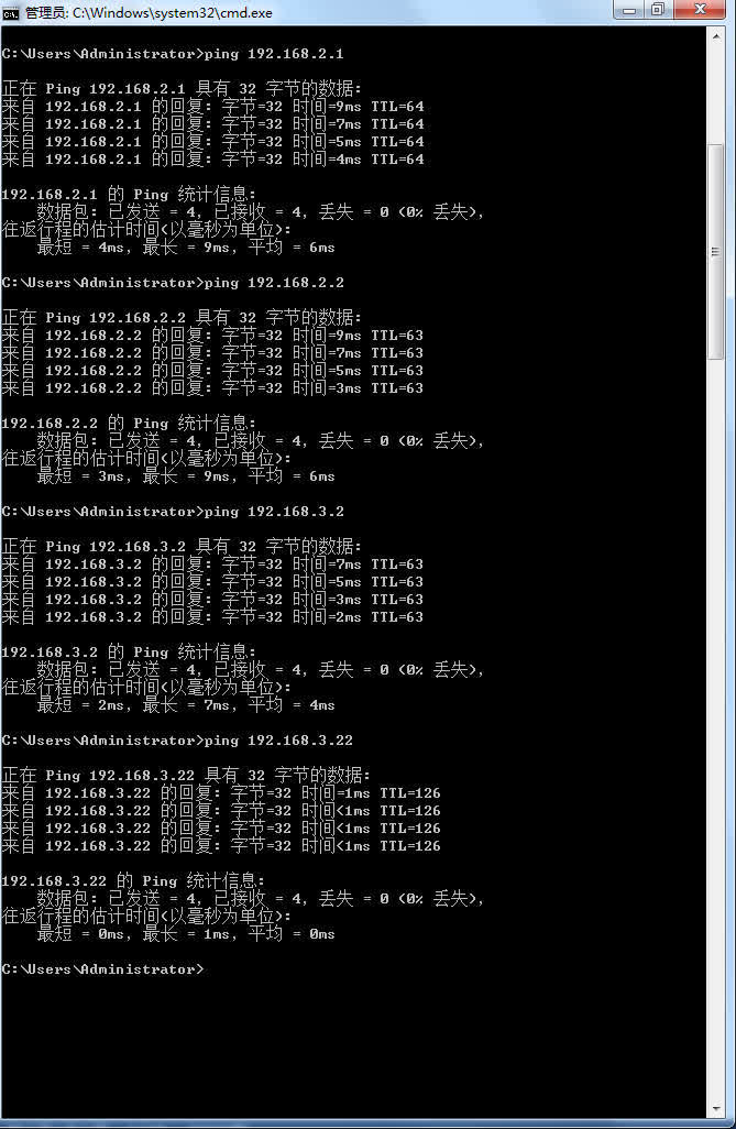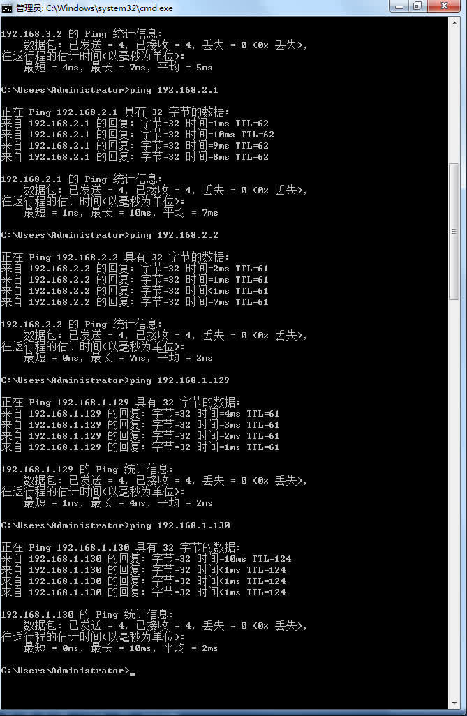 4B、PC1依次ping到PC3的路径上的IP地址后截屏