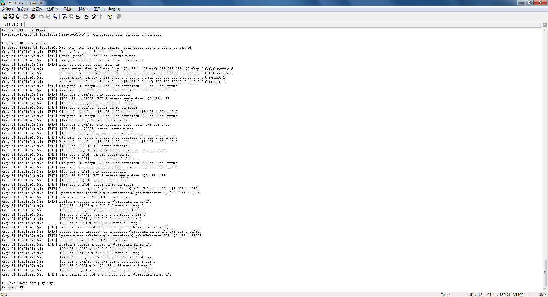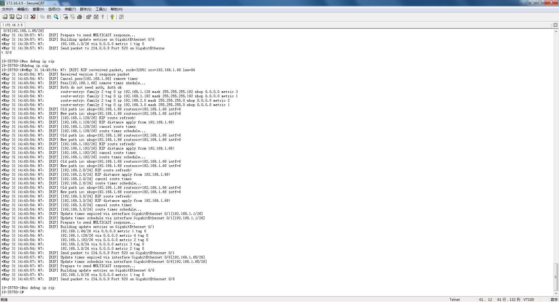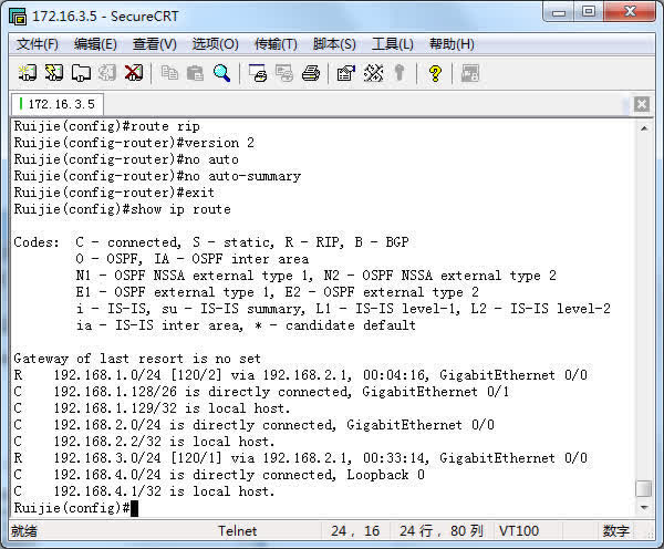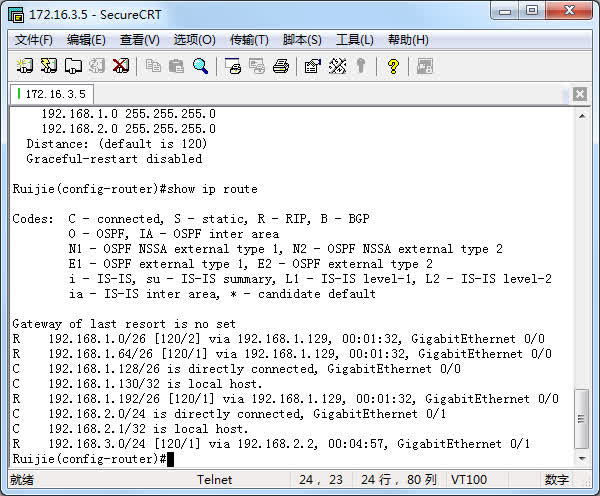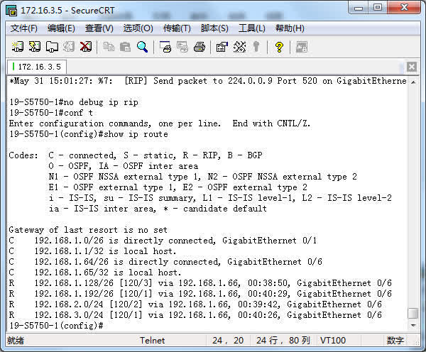 #no debug ip rip !停止显示rip调试信息