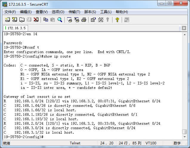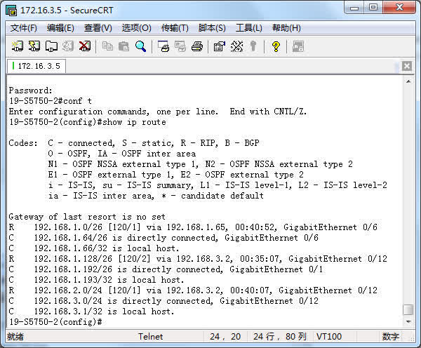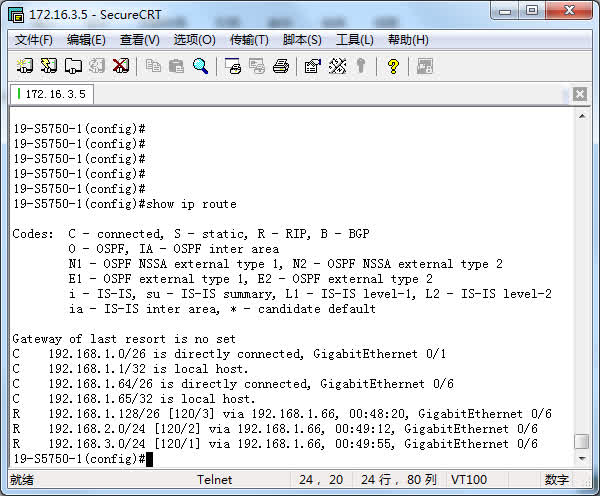 3E、Switch1的路由表