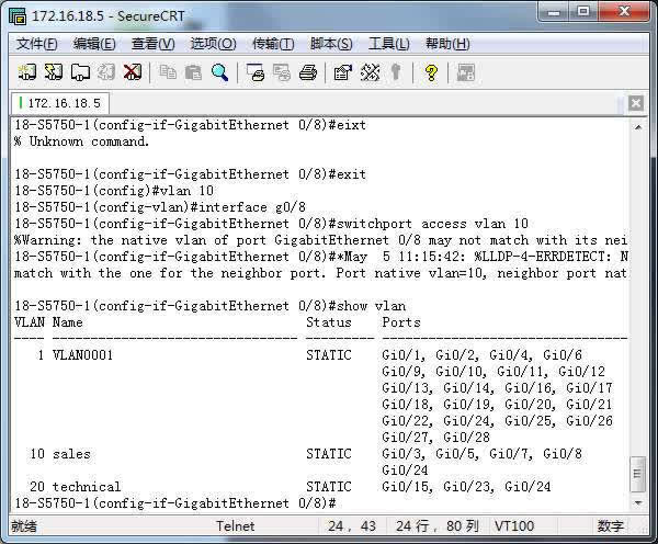 Switch#show vlan并截屏